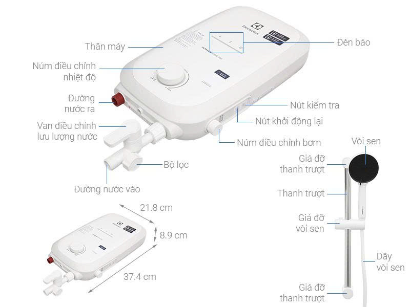 Áp lực nước hoạt động: Tối thiểu 0.01 Mpa - Tối đa 0.6 Mpa