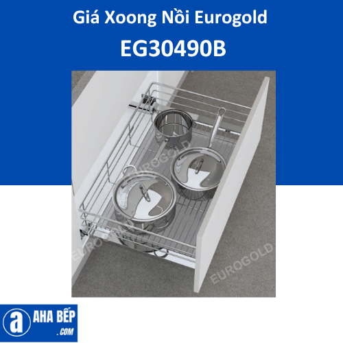 Giá xoong nồi inox nan âm tủ - gắn cánh, ray giảm chấn