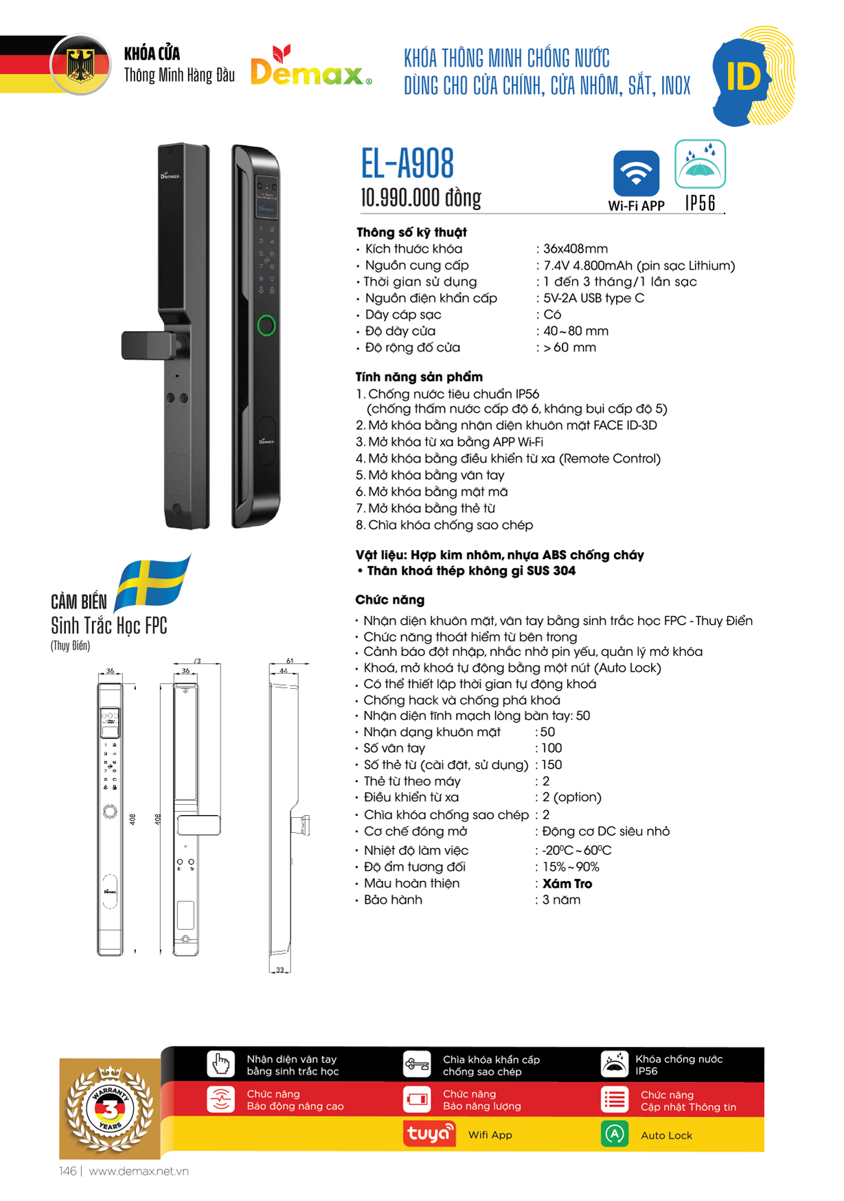 Khóa Thông Minh Demax EL-MS909GS (App Wifi + Video Call)