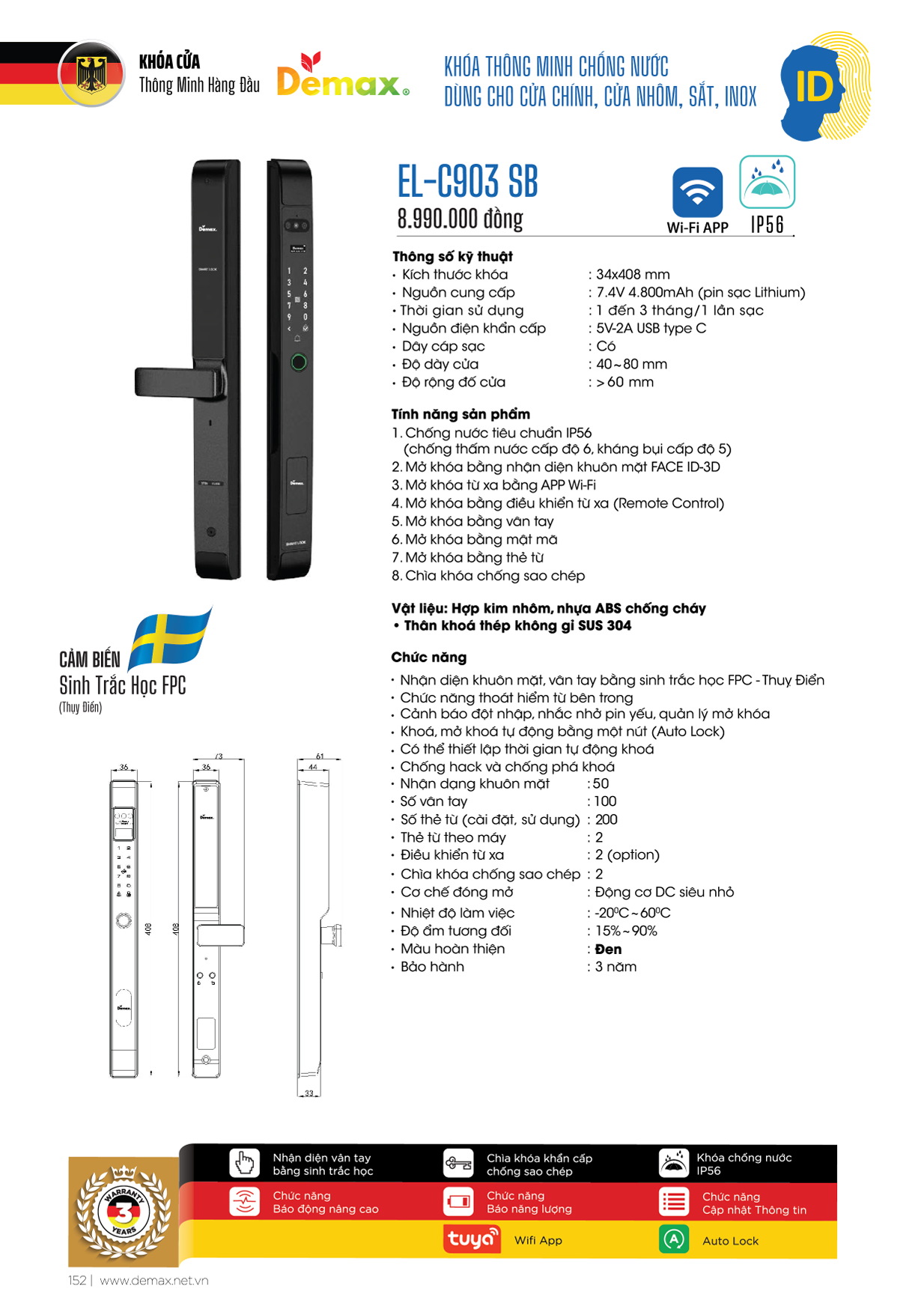 Khóa Thông Minh Demax EL902 GS (Remote + App Wifi)