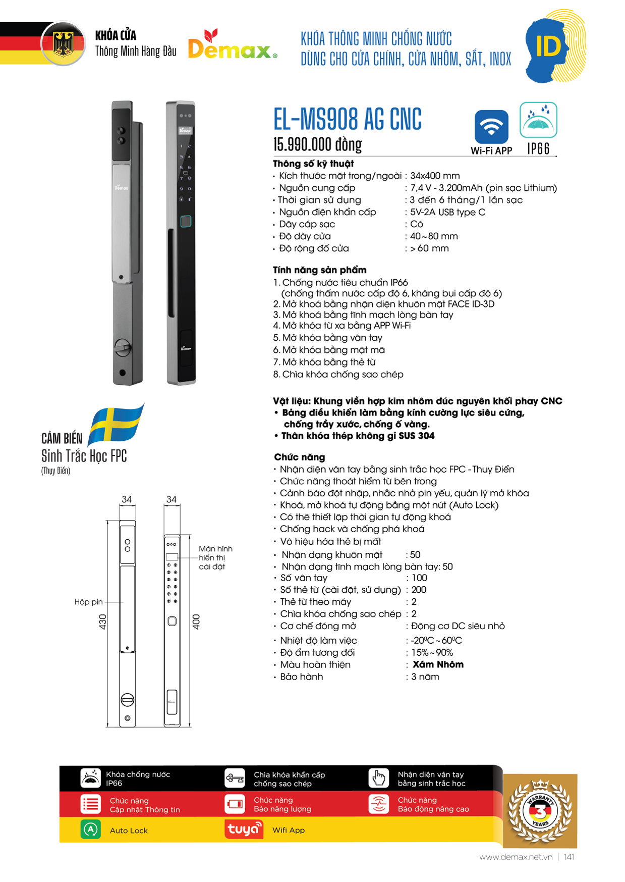 Khóa Thông Minh Demax EL-MS908 AG CNC