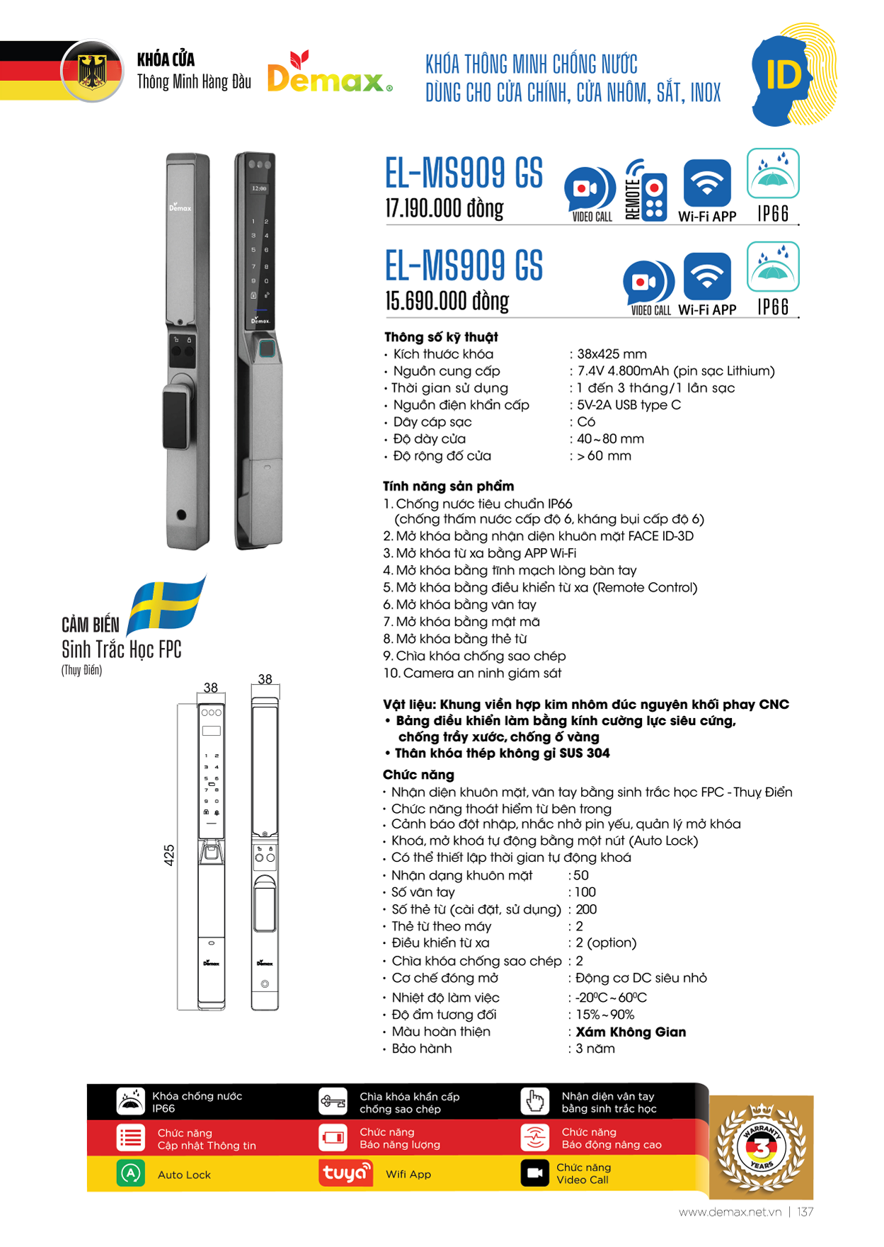 Khóa Thông Minh Demax EL-MS909GS (App Wifi + Video Call)