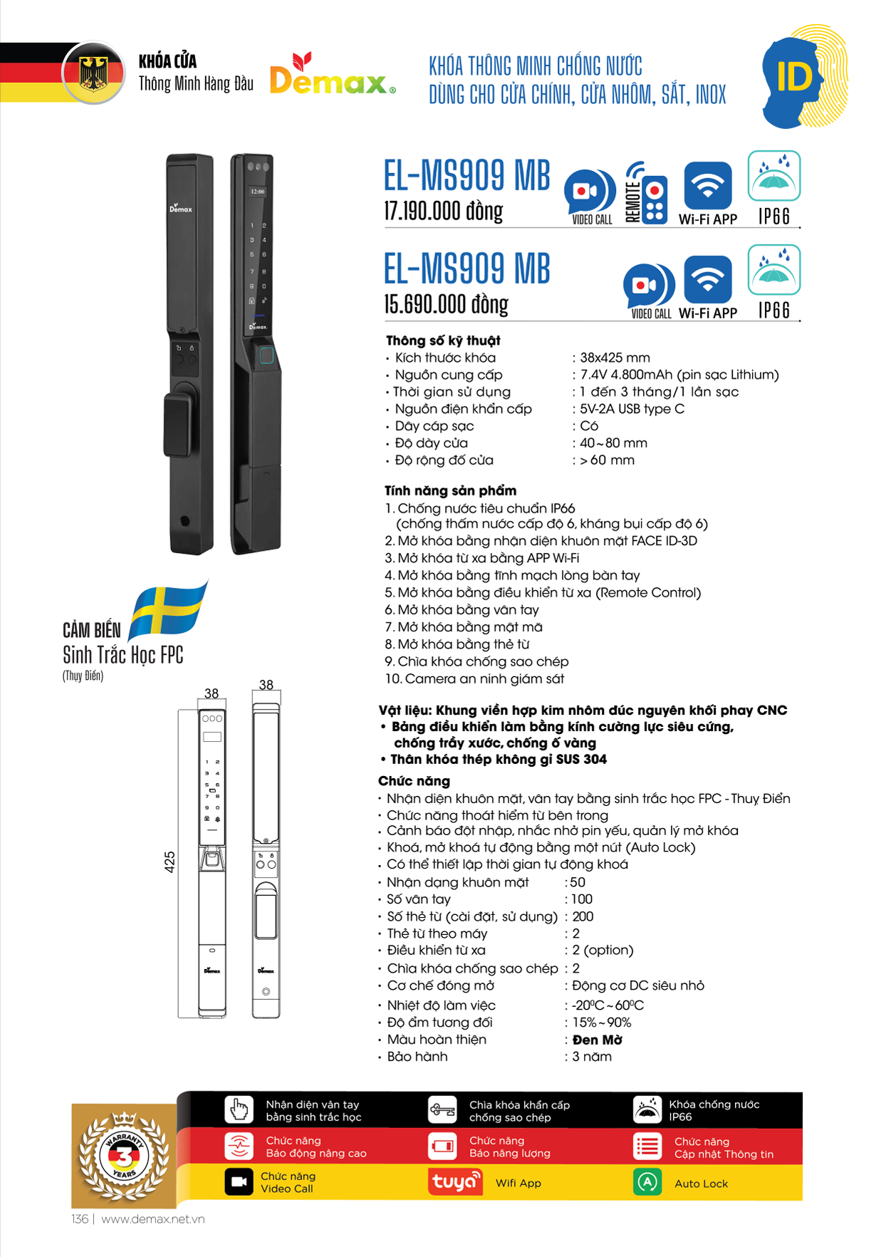 Khóa Thông Minh Demax EL-MS909GS (App Wifi + Video Call)