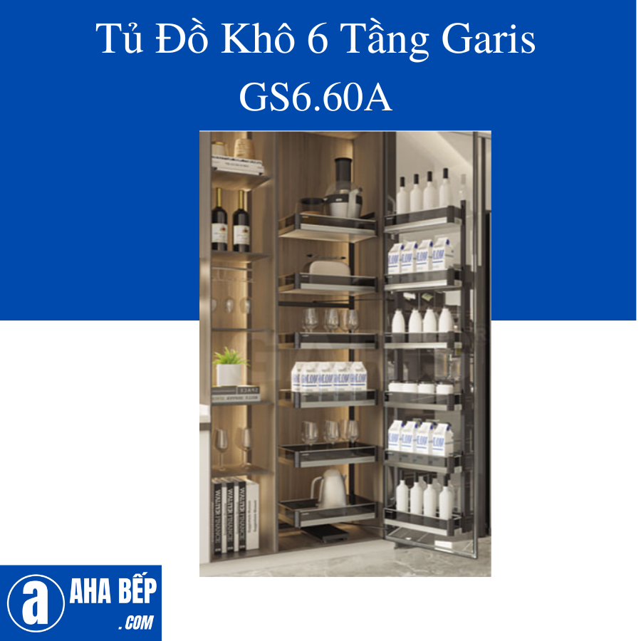 Tủ đồ khô 6 tầng, đáy inox vách kính bo viền nhôm, cánh mở GS6.60A