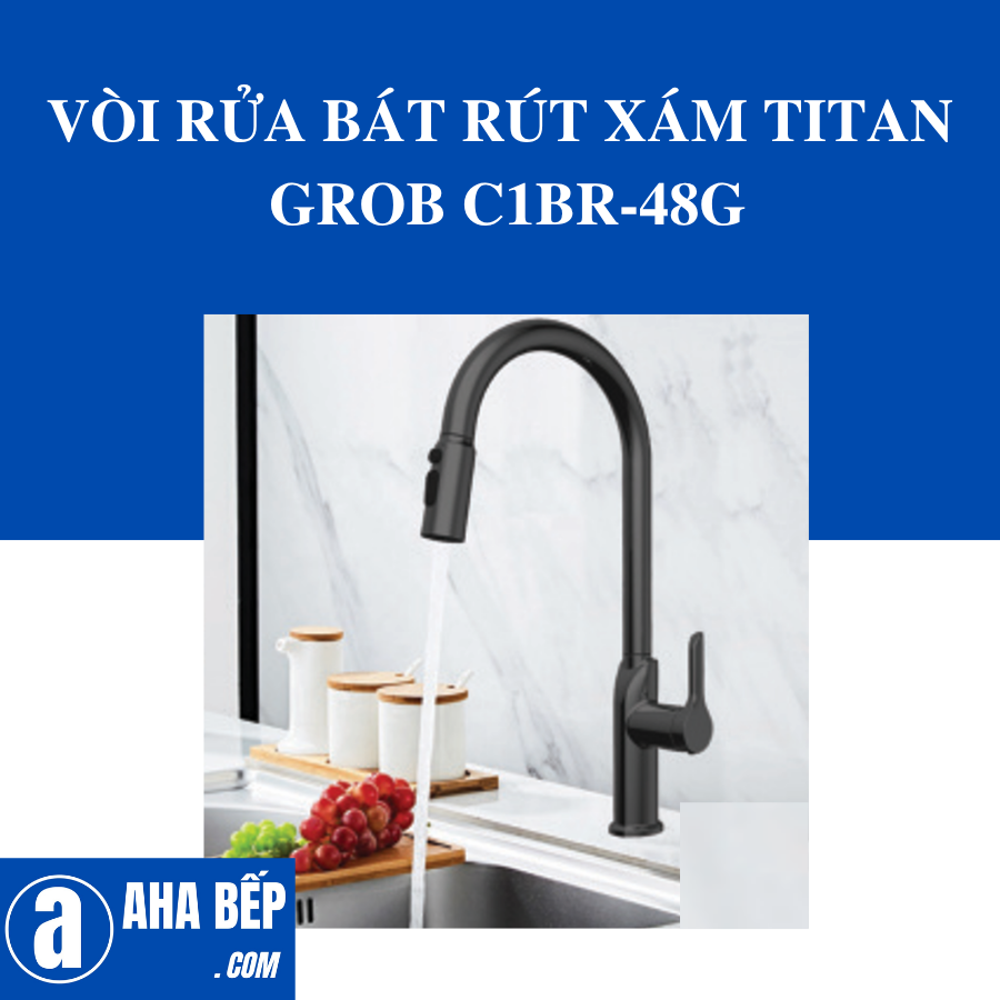 Vòi rửa bát rút cao cấp màu xám titan