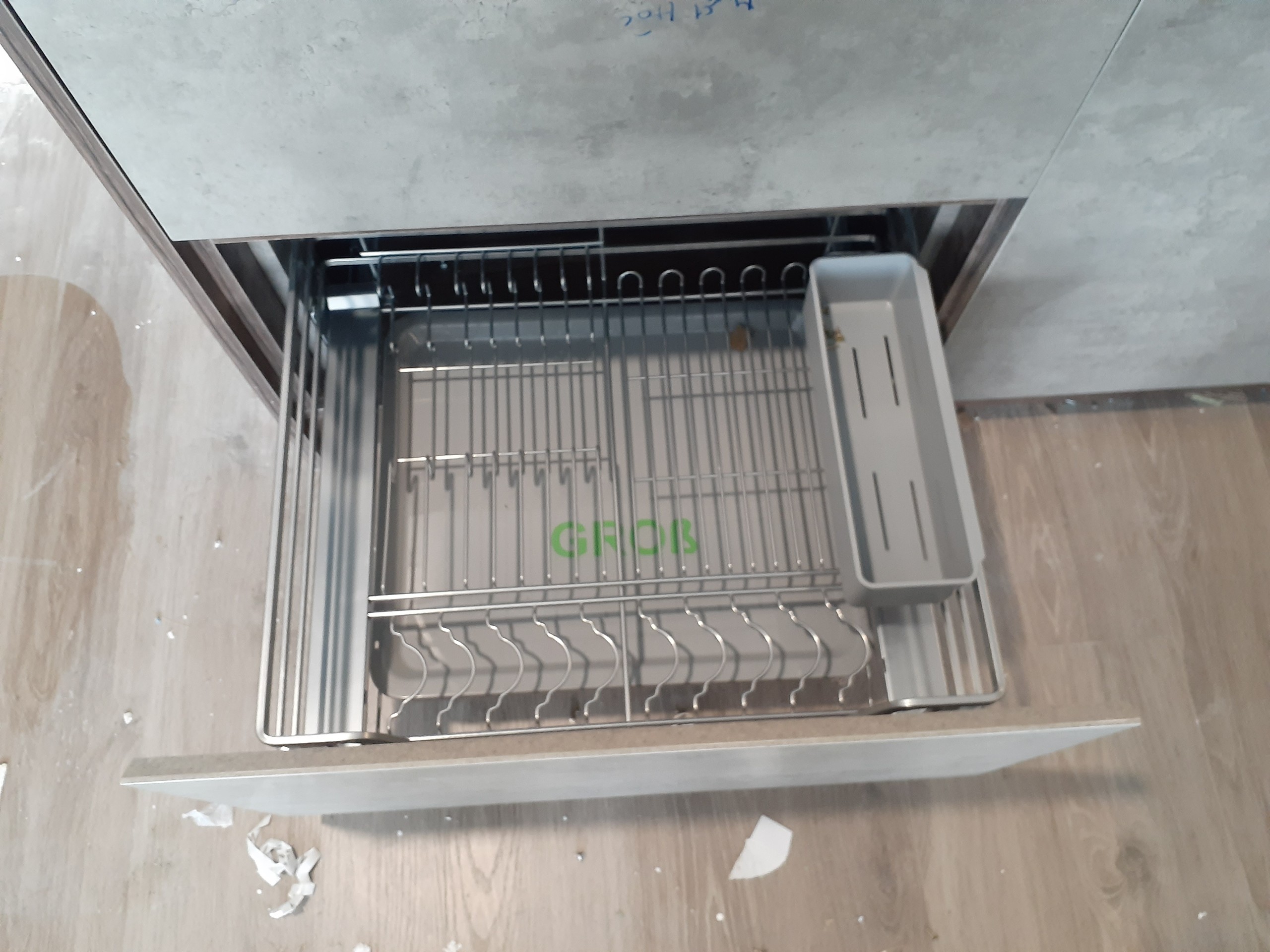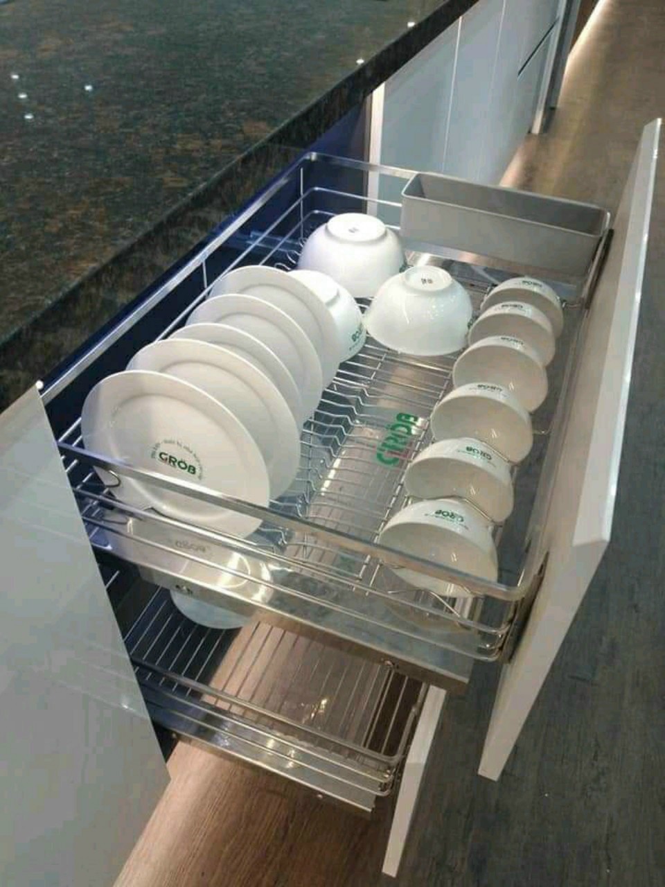 Được làm từ inox nan vuông. Sản phẩm là phụ kiện tủ bếp dưới có thiết kế 1 tầng, khay hứng nước tiện dụng giúp cho tủ bếp khô ráo (rửa xong có thể up xoong nồi luôn). Kệ sử dụng ray âm giảm chấn cao cấp, có lắp che ray nên chuyển động êm ái nhẹ nhàng.