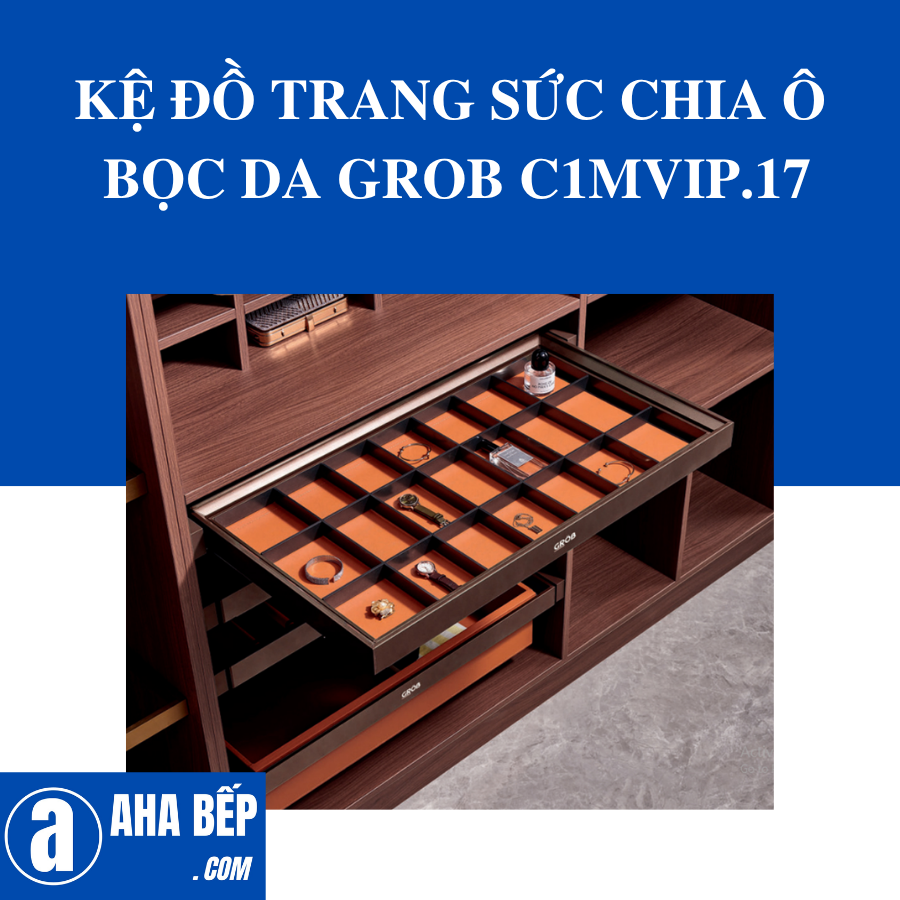 - Kệ để đồ trang sức có chia ô bọc da cao cấp, màu mocha, đáy màu cam