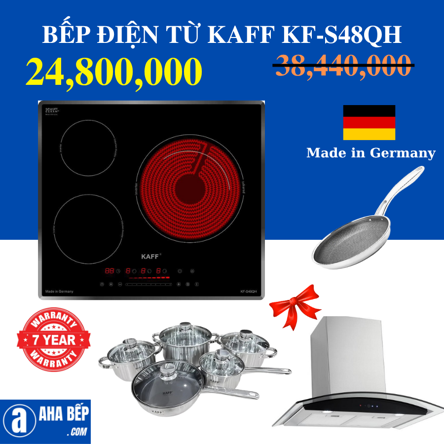 Đây là loại bếp thuộc dòng bếp cao cấp của thương hiệu thiết bị nhà bếp nổi tiếng tại Đức Kaff, là sự kết hợp hoàn hảo giữa 3 bếp từ (sử dụng các bộ nồi chảo inox từ, tiết kiệm điện và đun nấu nhanh hơn). Đối với bếp có đặc điểm làm nóng nhanh, hiệu suất nấu nướng cao nên rất phù hợp với những món ninh, hầm, luộc. Với bếp thì lại thực hiện nấu ngon những món chiên, rán.