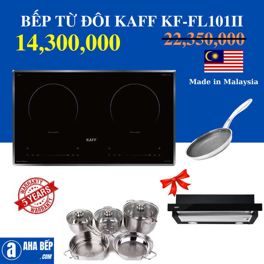 Bếp mang thương hiệu Kafflà dòng bếp cao cấp được thiết kế theo tiêu chuẩn công nghệ hàng đầu Châu Âu. Bếp từ KF-FL101II được thiết kế với 2 vùng nấu từ có chức năng Booster cực nhanh, nhờ những tính năng ưu việt, dễ dàng sử dụng và thiết kế đơn giản mà không kém phần sang trọng, đặc biệt bếp còn có tính năng chia công suất giúp tiết kiệm điện năng, bảo vệ bếp tốt hơn nên rất được các gia đình Việt ưa chuộng.