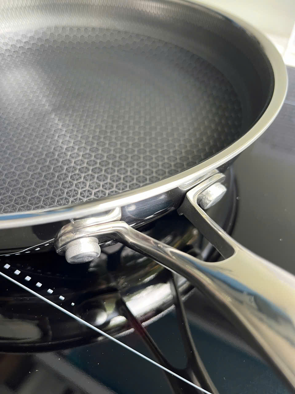 • Chảo tổ ong chống dính dạng tay cầm đáy liền 3 lớp Inox Sus304