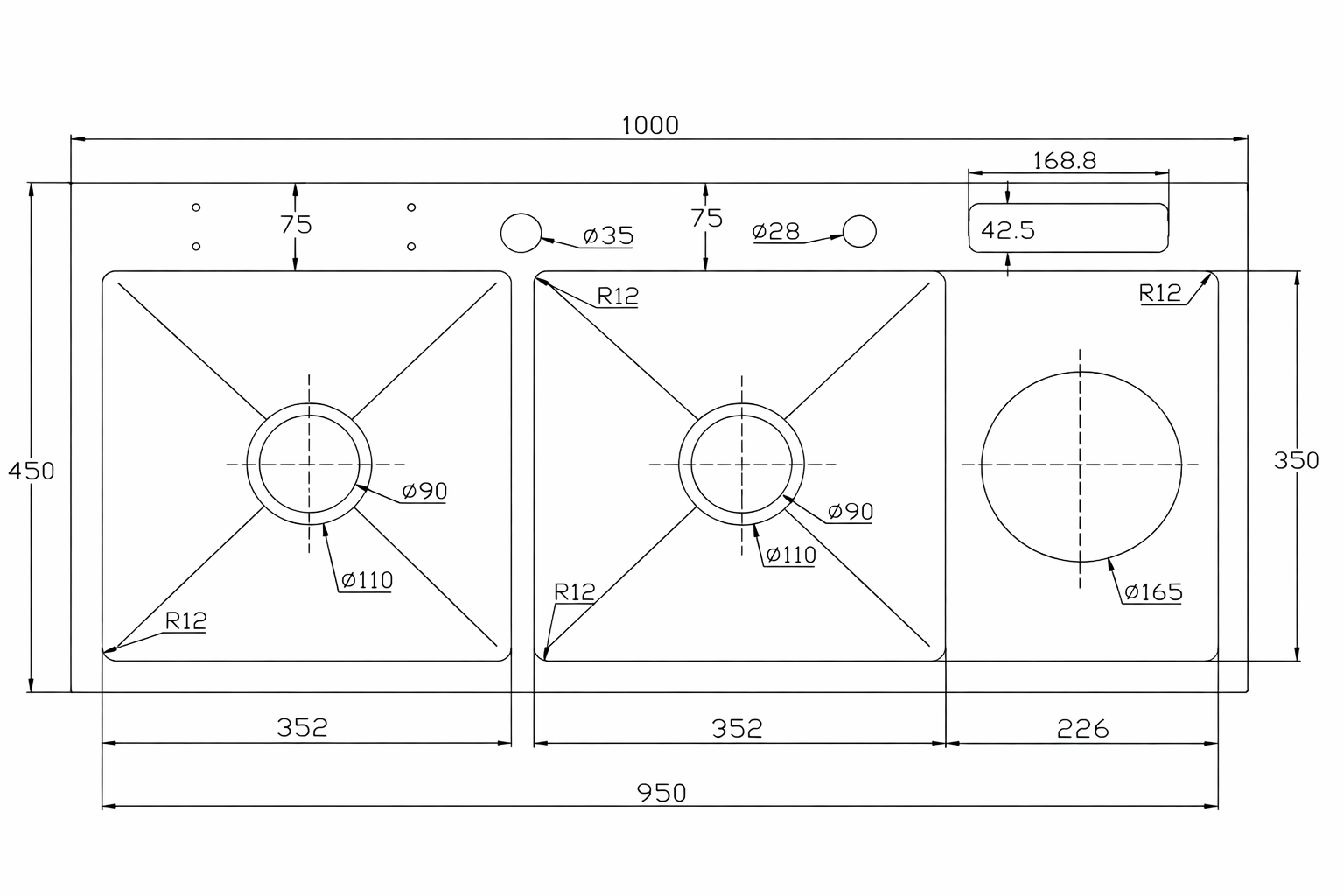 - Kích thước: 100x45x24 cm (DxRxC)