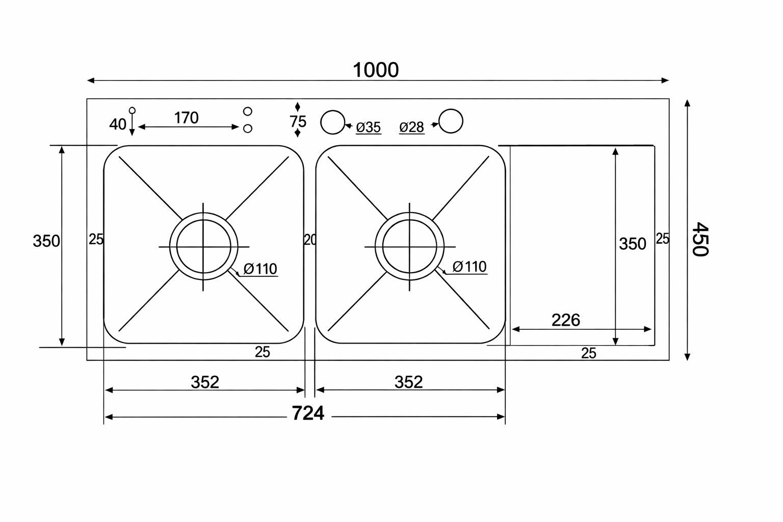- Kích thước: 100x45x24 cm (DxRxC)