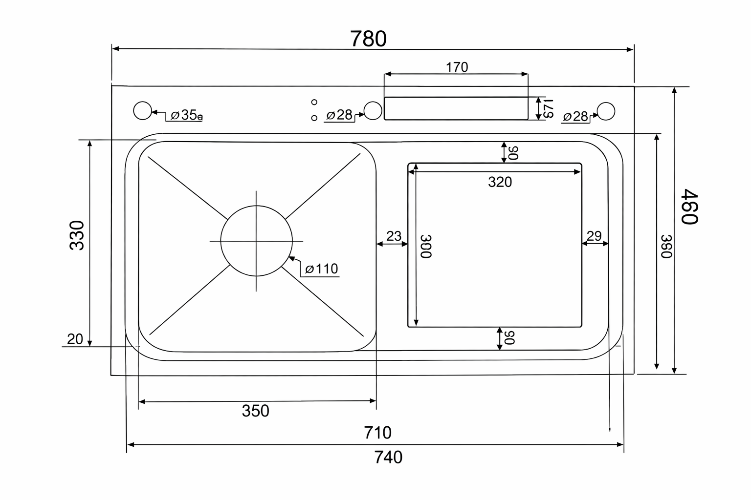 - Kích thước: 78x46x24 cm (DxRxC)