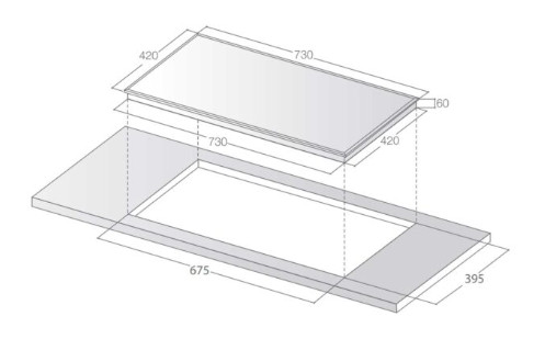 Kích thước khoét đá: 675 x 395 mm
