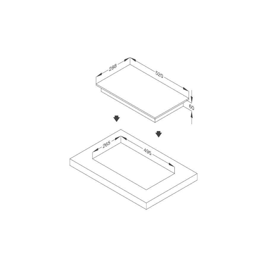 Kích thước bếp: W288 x D520 x H60mm