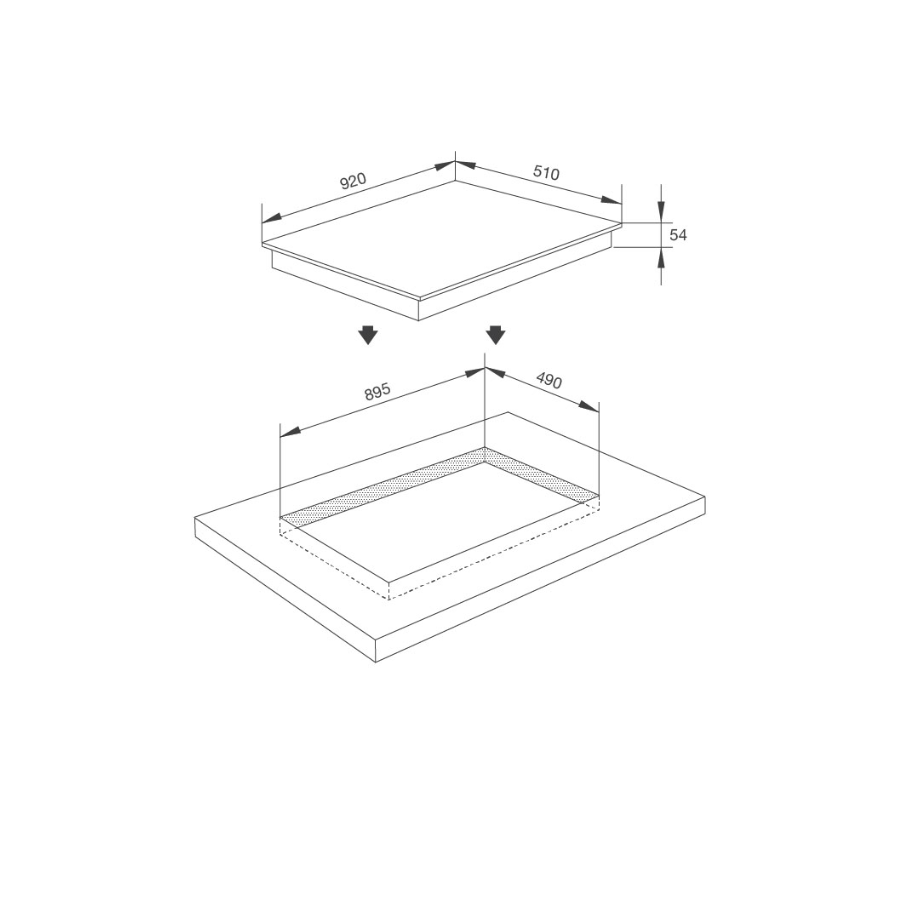 Kích thước bếp: W920 × D510 × H54 mm