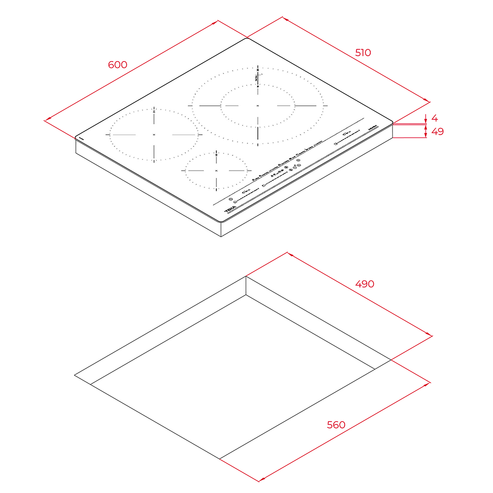 Kích thước mặt lắp âm: W560(mm) x D490(mm).